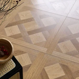 French Vintage Parquet Laminate | Cream Wood Art Flooring | Versailles Pattern