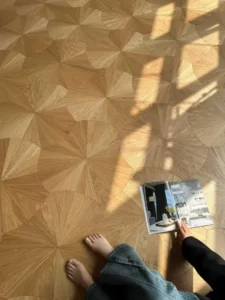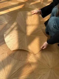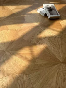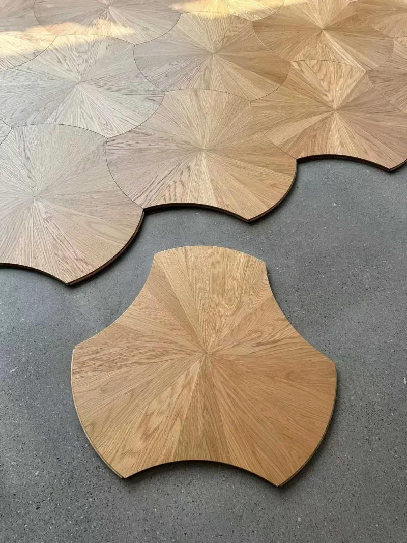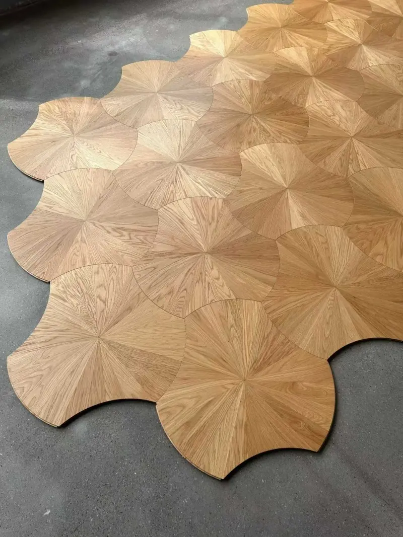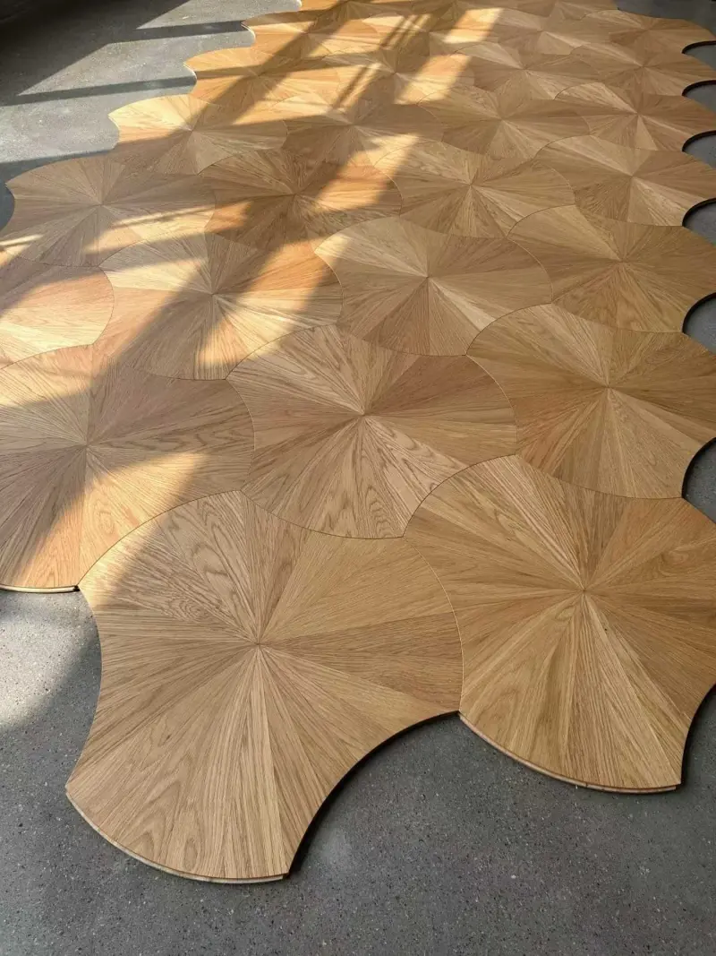 Multi-layer Solid Wood Composite Art Parquet Flooring Oak Sunburst Radial Pattern Inlaid Tiles Custom Size for Villa Living Room Decor Wholesale