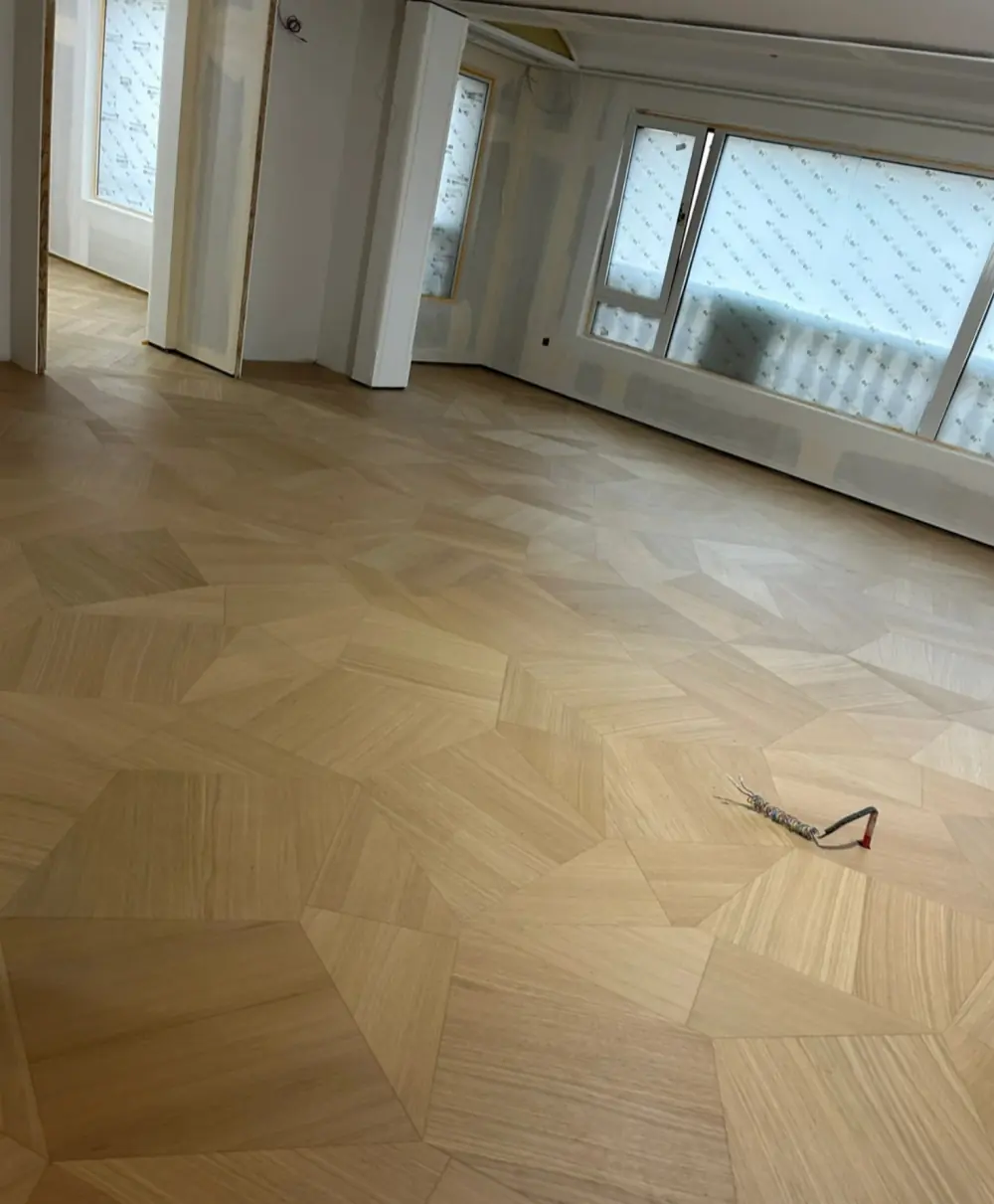 Lantai Kayu Pepejal Pelbagai Lapisan Tidak Teratur | Lantai Kayu Oak Parket Geometrik untuk Bahagian Dalaman Rumah Moden