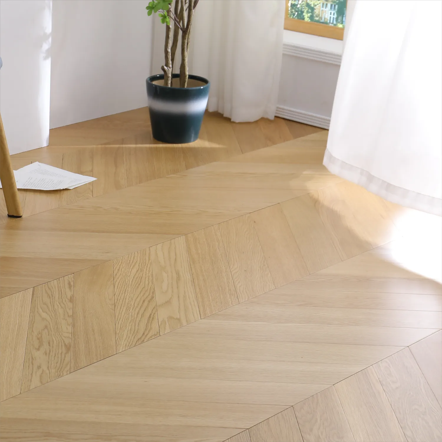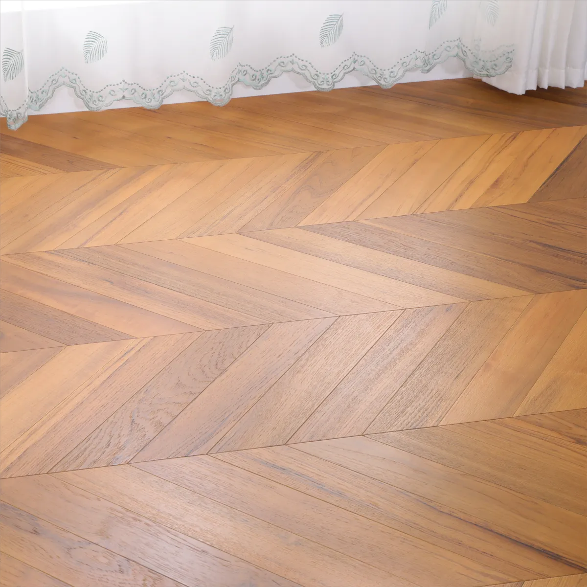 Lantai Herringbone Tiga Lapisan Tulen Premium Kayu Pepejal Oak Putih Eropah